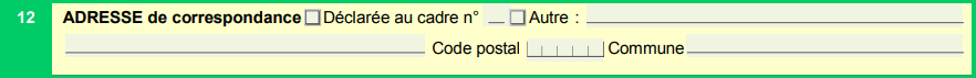 Indiquez votre adresse de correspondance pour recevoir les courriers suite au dépôt du formulaire au greffe du tribunal de commerce, soit vous indiquez le numéro du cadre dans lequel vous avez déjà renseigné l’adresse soit vous complétez « Autre ».